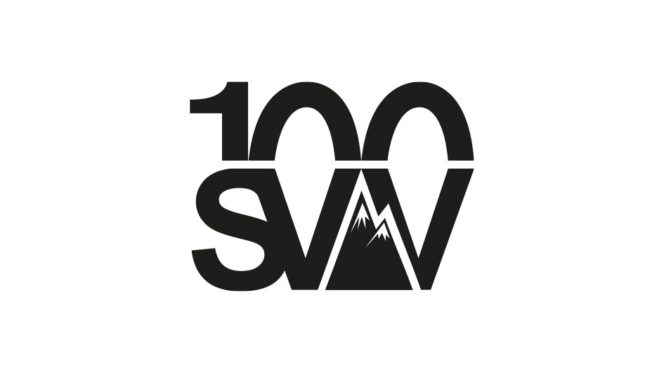 Jubiläumslogo zusammengesetzt aus Logo und der Zahl 100.
